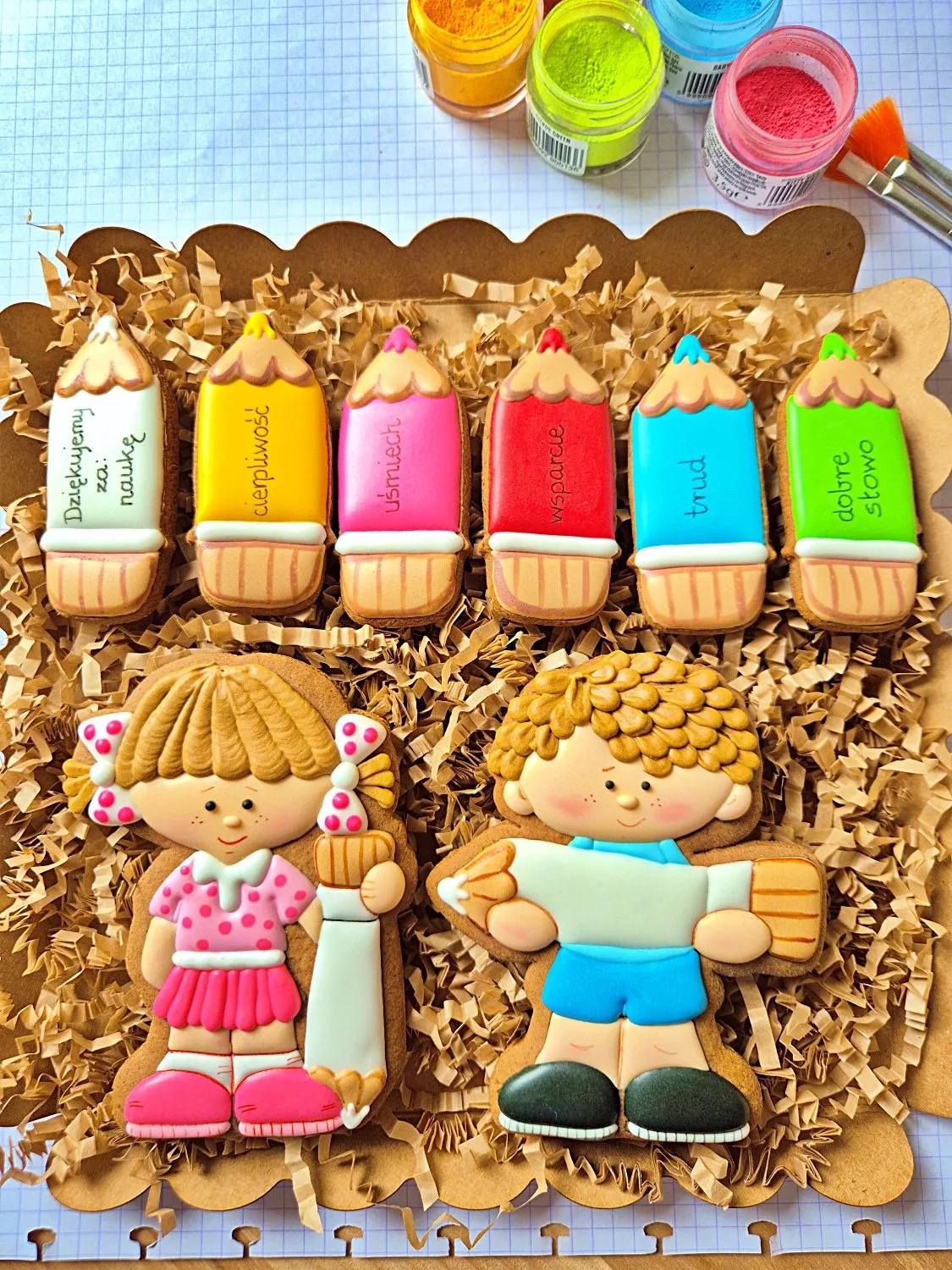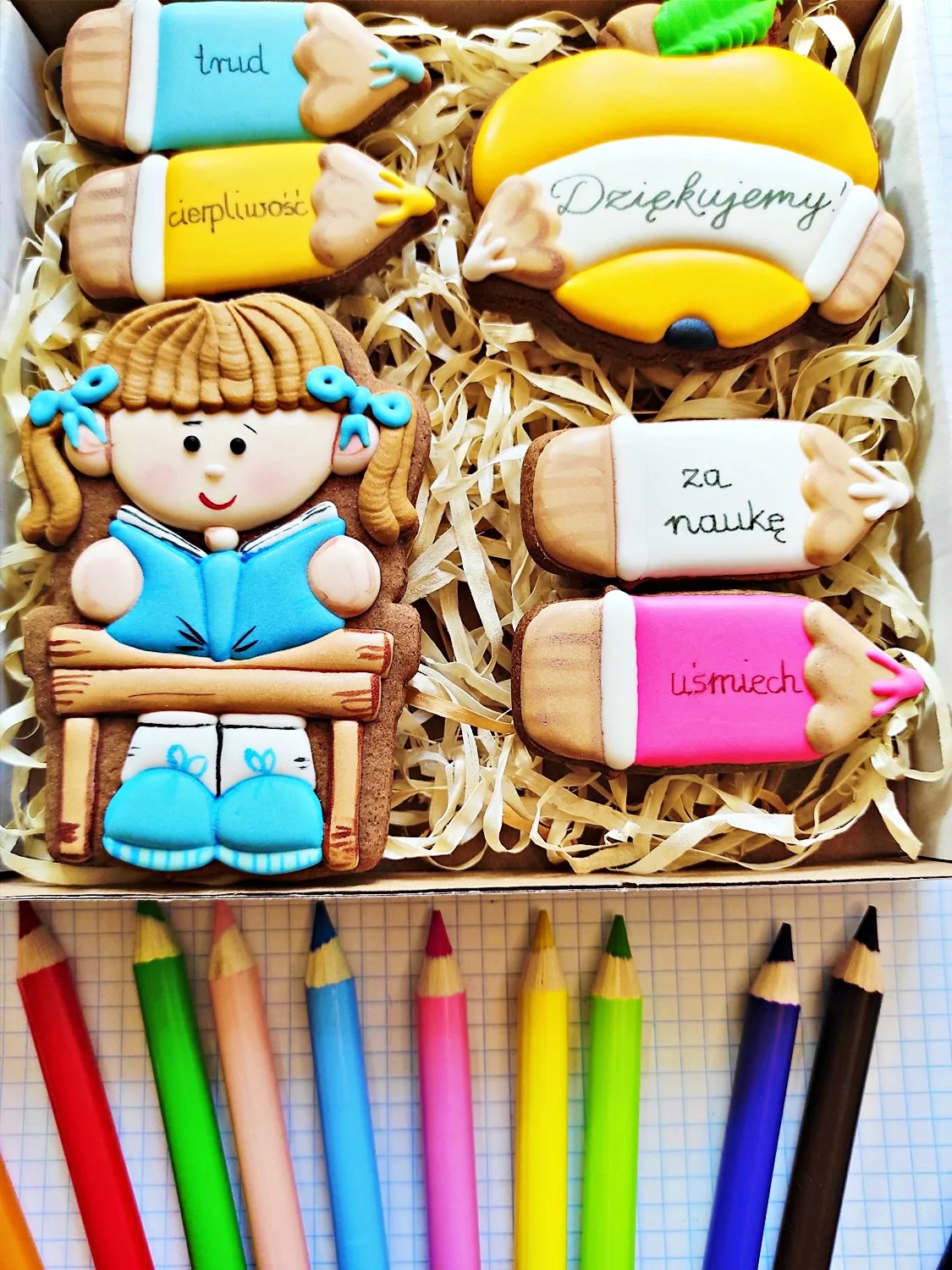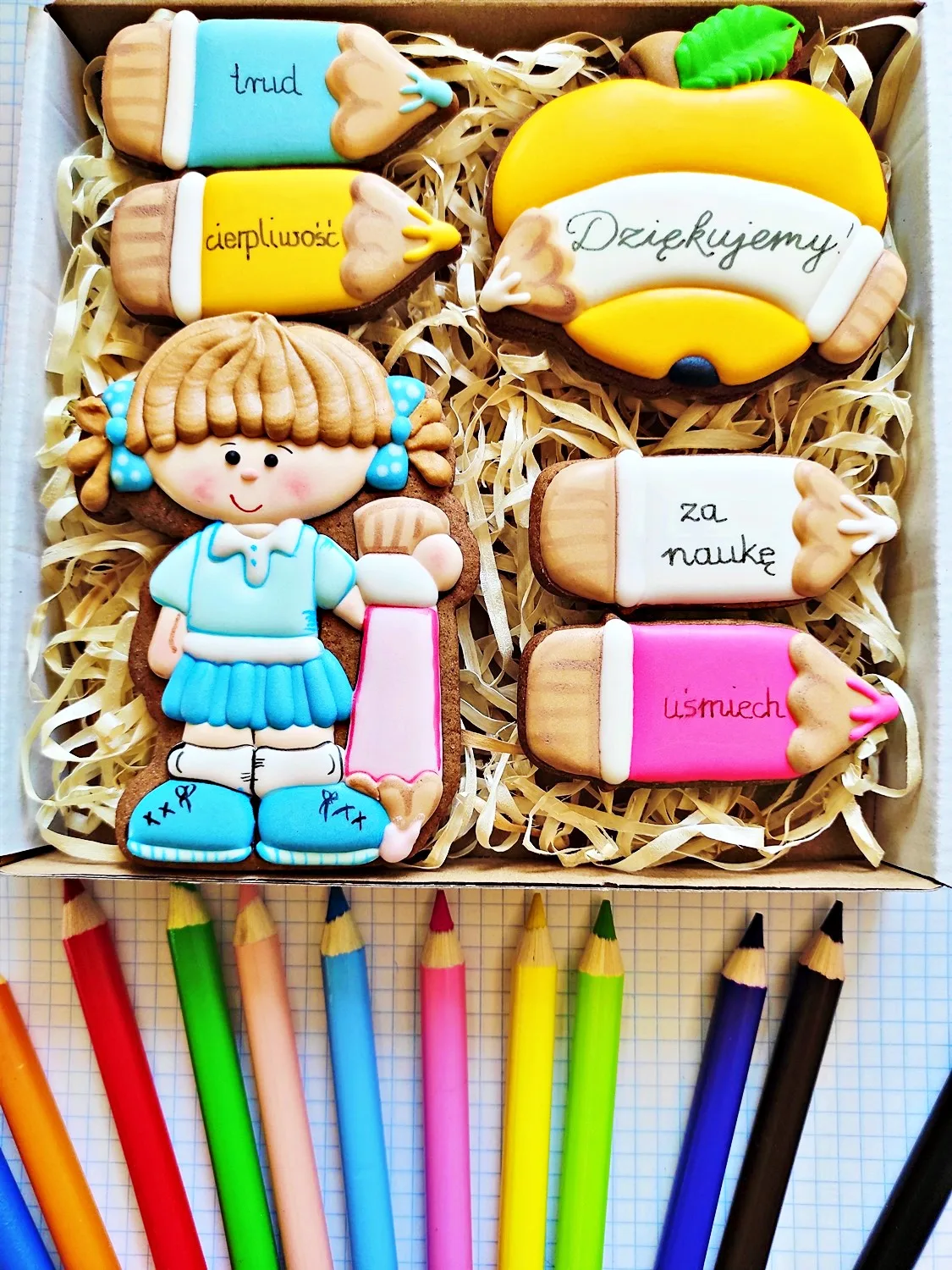 Piernik Dla Dzieci Zakończenie Roku Szkolnego Dziewczynka + 4 Kredki