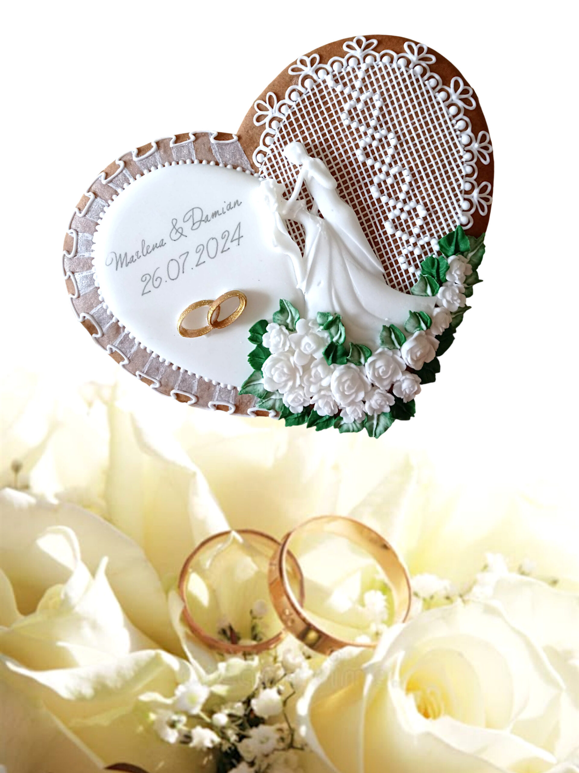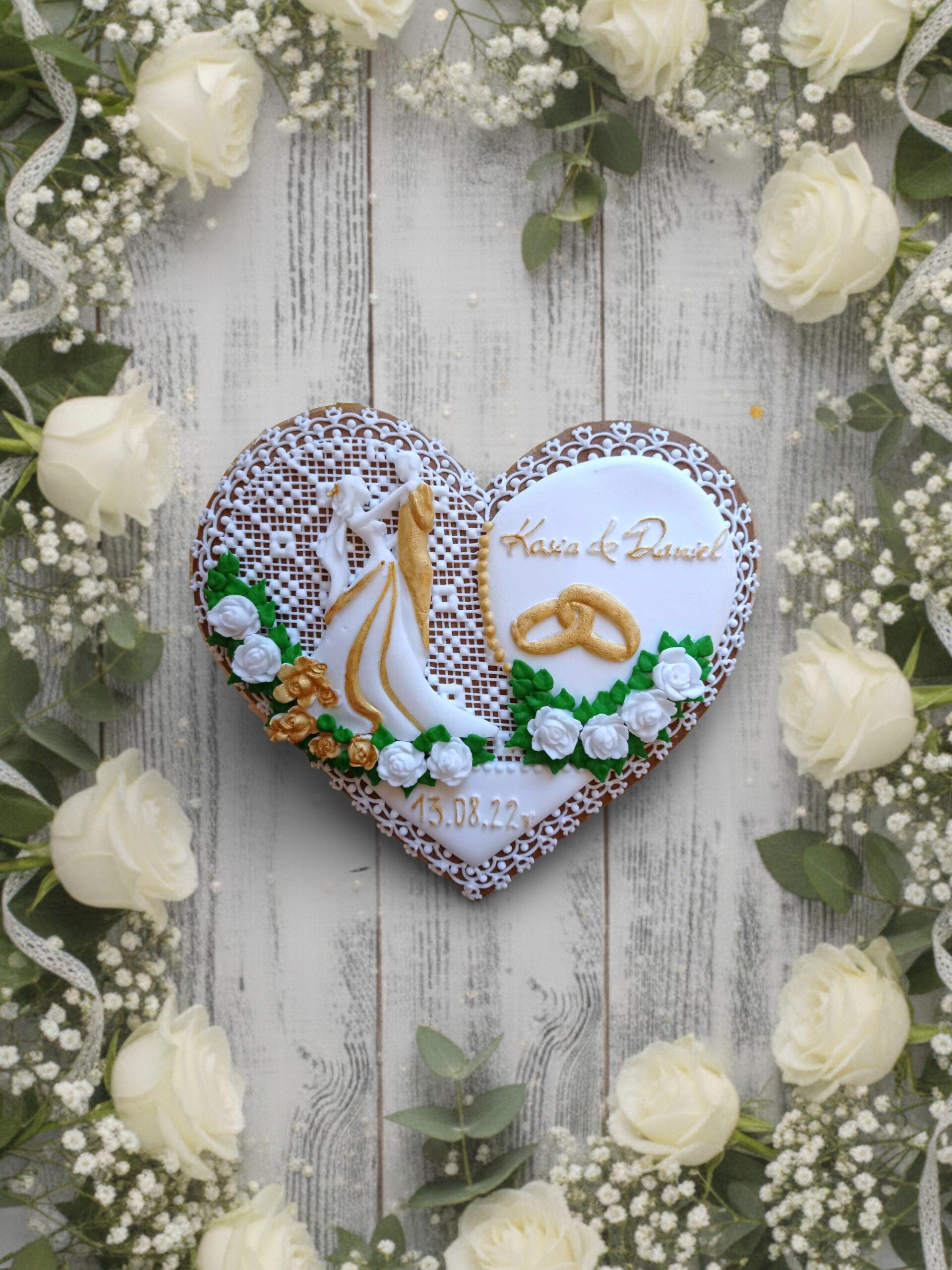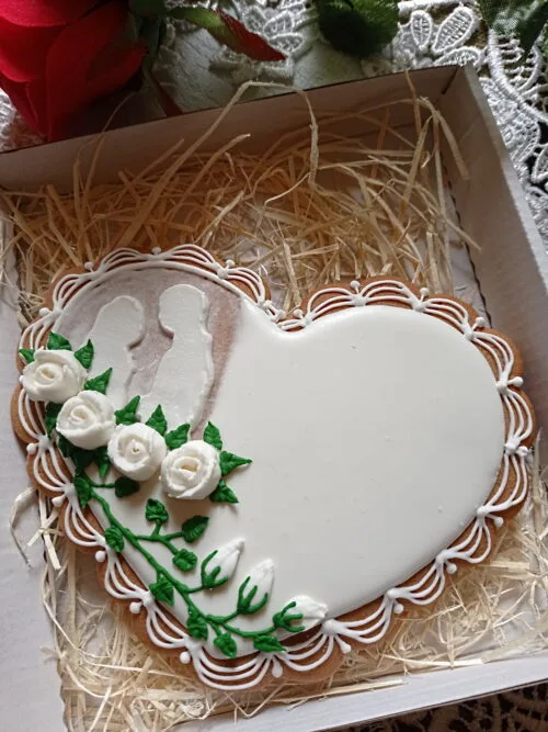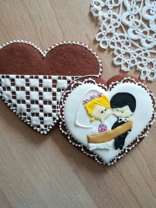 Miły podarunek dla Waszych gości. Wyjątkowy dzień, niech zostanie w ich pamięci na dłużej, także dzięki symbolicznym pierniczkom weselnym. Ręcznie wykonany. Na bazie prawdziwego miodu z pobliskich pasiek. Starannie dopracowane w najmniejszym detalu. Udekorowane, każde z osobna niepowtarzalny wygląd. Idealne na prezent, wystrój, dekoracje.